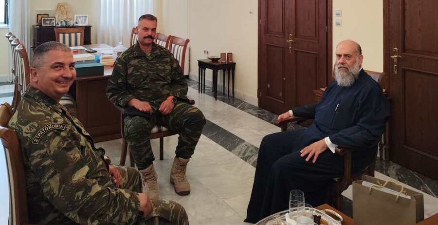 Το πρωί της Πέμπτης 27 Ιουνίου 2024, ο Σεβασμιώτατος Μητροπολίτης μας κ. Τιμόθεος εδέχθη στο Επισκοπείο εθιμοτυπική επίσκεψη από τον διοικητή του Κέντρου Εκπαίδευσης Στρατονομίας Ρούσσου αντισυνταγματάρχη πεζικού κ. Στέλιο Γαρίτο, συνοδευόμενος από τον υπολοχαγό κ. Ζώτο.