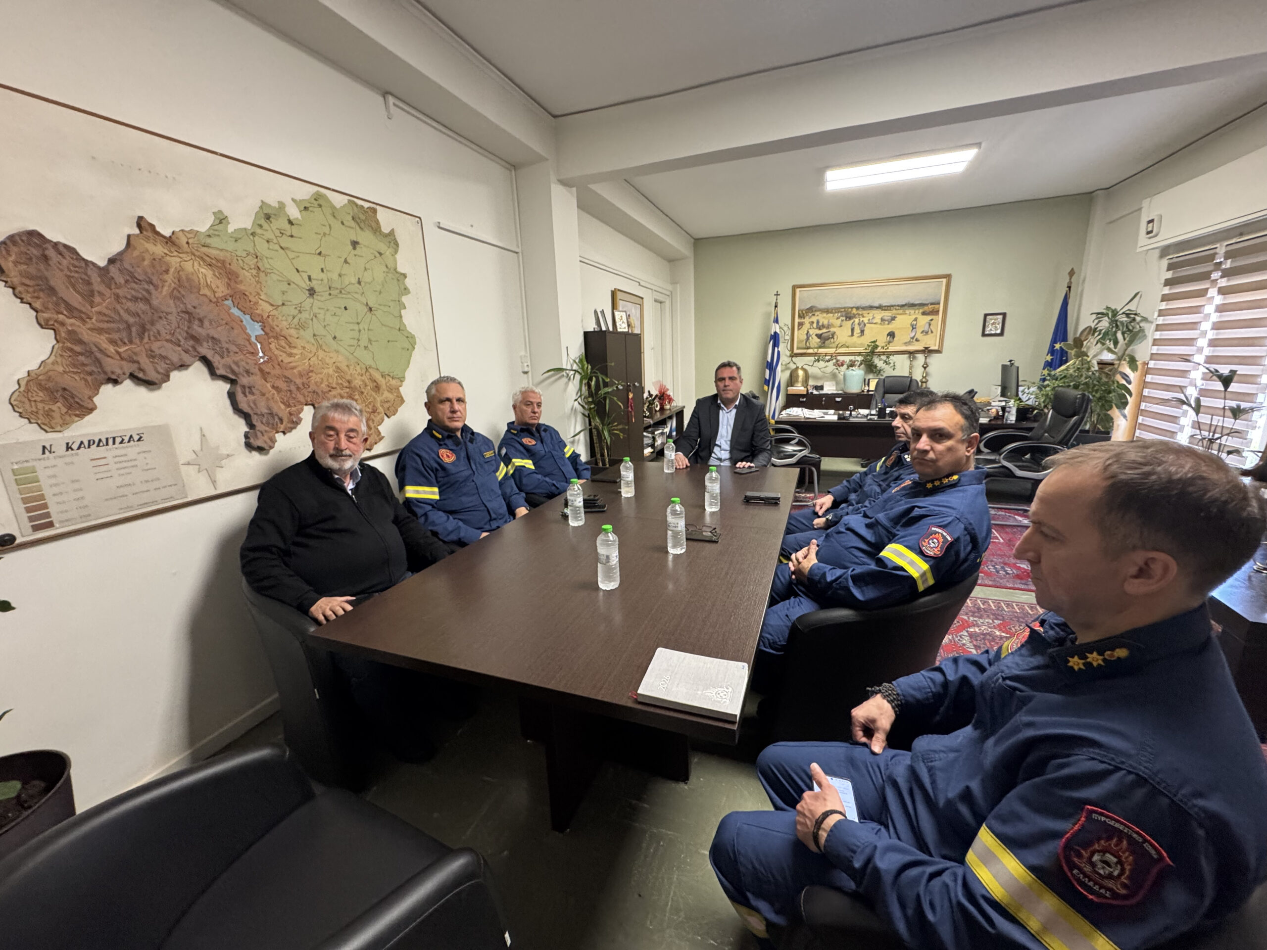 Στη συνάντηση συμμετείχαν ο Αντιστράτηγος ΠΣ Παναγιώτης Μπαθρέλος, Γενικός Επιθεωρητής Πυροσβεστικού Σώματος Βορείου Ελλάδος, ο Υποστράτηγος Περικλής Κουλκουβίνης, Συντονιστής Επιχειρήσεων Στερεάς Ελλάδος και Θεσσαλίας, ο Αρχιπύραρχος Αναστάσιος Καρατζάς, Περιφερειακός Διοικητής Πυροσβεστικών Υπηρεσιών Θεσσαλίας, καθώς και ο Πύραρχος Ευάγγελος Αρβυθάς, Διοικητής ΔΙ.Π.Υ.Ν. Καρδίτσας.