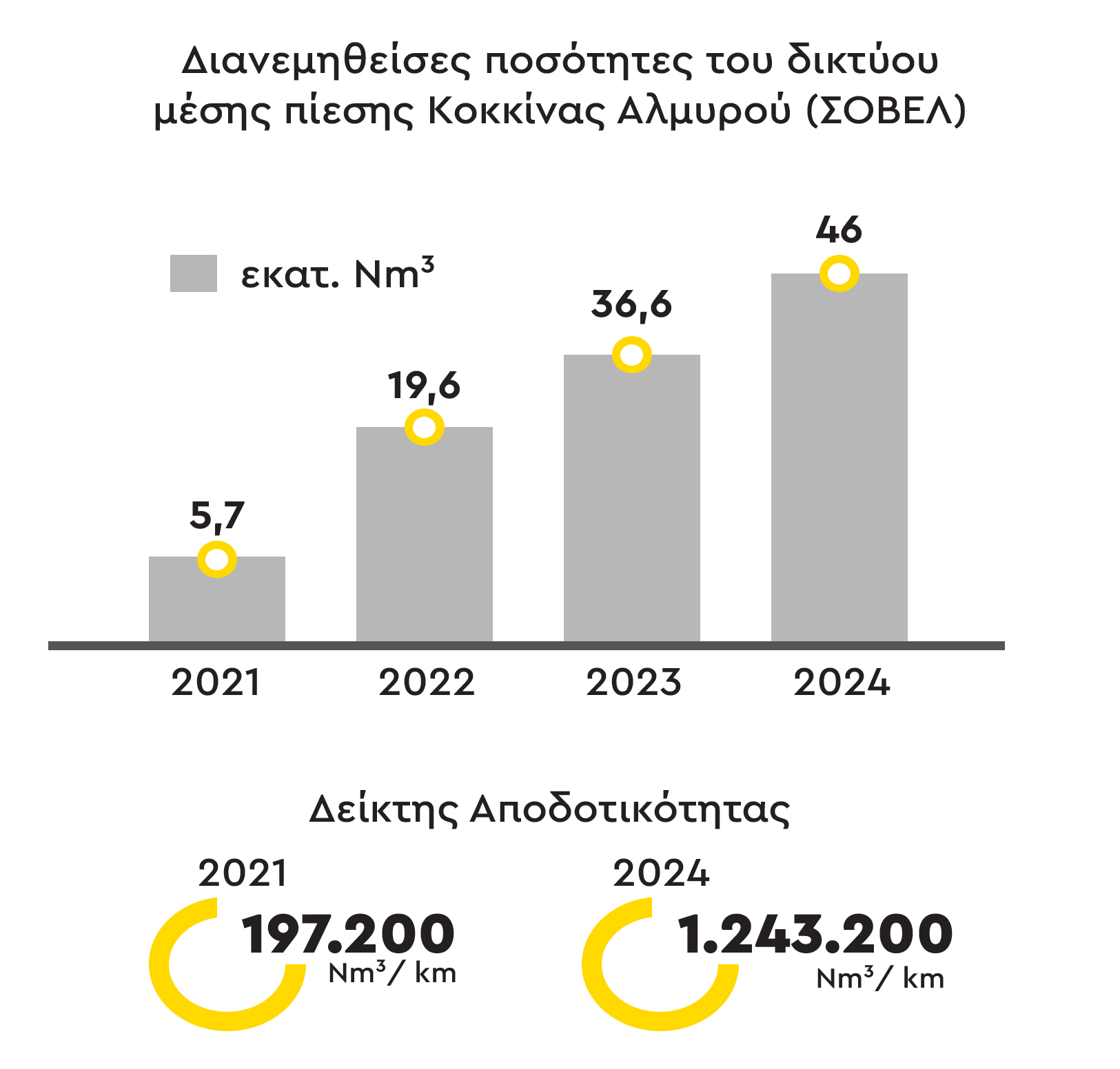 Δέκα (10) επιπλέον αιτήσεις για τη σύνδεση μονάδων ΣυμπαραγωγήςΗλεκτρισμού-Θερμότητας με το δίκτυο διανομής της ΕΔΑ ΘΕΣΣ έχουν υποβληθεί στη Περιφέρεια Θεσσαλίας, ενώ βρίσκεται σε εξέλιξη η διαδικασία για την υπογραφή των συμβάσεων σύνδεσης -σύμφωνα με τον Κώδικα Διαχείρισης Δικτύου Διανομής- η οποία αναμένεται να ολοκληρωθεί εντός Μαρτίου. Οι νέες μονάδες Συμπαραγωγής θα συνδεθούν στο υφιστάμενο δίκτυο μέσης πίεσης Κοκκίνας – Αλμυρού (ΣΟΒΕΛ) μήκους περίπου 30 χλμ. Αξίζει να σημειωθεί ότι το υφιστάμενο δίκτυο της ΣΟΒΕΛ που για το έτος 2021 διένεμε συνολικά 5,7 εκατομμύρια Nm3, εκτιμάται ότι με τις εν δυνάμει συνδέσεις των νέων μονάδων Συμπαραγωγής, στο τέλος του 2024,θα διανέμει περί τα40-45 εκατομμύρια Nm3 φυσικού αερίου.Τα έργα σύνδεσης των μονάδων Συμπαραγωγής με το δίκτυο διανομής φυσικού αερίου, ενισχύουν αντίστοιχα την αποδοτικότητα του δικτύου Κοκκίνας – Αλμυρού,καθώς από 197.200Nm3 φυσικού αερίου / χιλιόμετρο δικτύου το 2021, ο δείκτης θα αυξηθεί σε 1.243.200Nm3 / χιλιόμετρο το 2024.