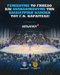 Κάθε φίλαθλος με την παρουσία του στο γήπεδο στο μεγάλο ματς της Κυριακής συνεισφέρει και ο ίδιος, καθώς η ΙΑΠΩΝΙΚΗ θα δωρίσει συγκεκριμένο ποσό στο Νοσοκομείο Καρδίτσας για κάθε ένα θεατή! Το κατάμεστο γήπεδο θα αποτελέσει τη μεγαλύτερη αναγνώριση μιας τέτοιας ενέργειας που δίνει το παράδειγμα για το πώς η κοινωνία, οι επιχειρήσεις και ο αθλητισμός στεκόμαστε αρωγοί στο σύστημα υγείας, ειδικά στον πιο ευαίσθητο τομέα της φροντίδας των παιδιών.
