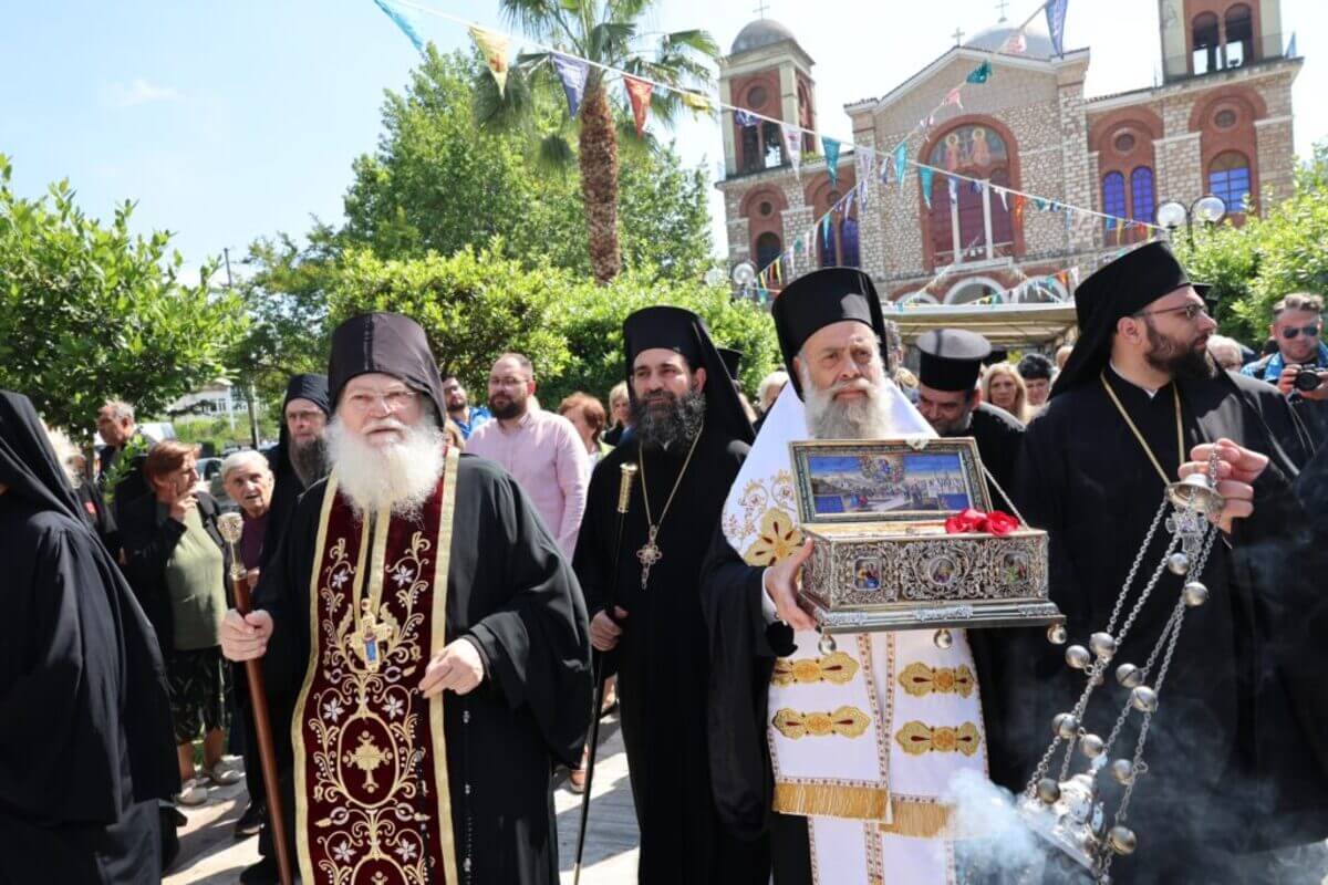 «Όλοι μας ευχαριστούμε τον Άγιο Θεό, πάντα, για όλα εκείνα που γνωρίζουμε και εκείνα που δεν γνωρίζουμε, γιατί τα αισθητά, αντιληπτά και χειροπιαστά στοιχεία όπως η Τιμία Ζώνη της Παναγίας μας, τα λείψανα των Αγίων μας, είναι πάντα δίπλα μας, πάντα κοντά μας, είναι οι γιατροί μας, οι θεραπευτές μας, οι ψυχοθεραπευτές μας αν θέλετε οι αληθινοί. Για αυτό ευχαριστούμε πάντα τον Άγιο Θεό μας, τον ευγνωμονούμε και τον παρακαλούμε να συνεχίζει παραβλέποντας τα λάθη και τις ανομίες τούτου του λαού, τις δικές μας δηλαδή, να στηρίζει όλους εμάς. Γέροντα ευχαριστίες για την τιμή που κάνατε σε εμάς να φέρετε τη Ζώνη της Παναγίας μας. Να είστε όλοι καλά».
