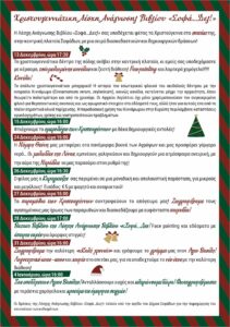 Η Λέσχη Ανάγνωσης Βιβλίου Σοφά…δες! στα πλαίσια των χριστουγεννιάτικων εκδηλώσεων του Δήμου Σοφάδων συμμετέχει δυναμικά, έχοντας το δικό της σπιτάκι στην κεντρική πλατεία Σοφάδων και διοργανώνοντας παράλληλα μια σπουδαία συνάντηση με τα μέλη της Λέσχης.