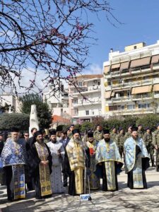 Ακολούθησε η τέλεση της επιμνημόσυνης δέησης στον προ του Ηρώου πεσόντων χώρο, όπου στη συνέχεια κατέθεσαν στεφάνι η Γενική Γραμματέας Συντονισμού κ. Εύη Δραμαλιώτη ως Εκπρόσωπος της Κυβέρνησης στις εορταστικές εκδηλώσεις, ο Αντιπεριφερειάρχης Καρδίτσας κ. Κωνσταντίνος Τέλιος, ο Αστυνομικός Διευθυντής Καρδίτσας Ταξίαρχος Στ. Μπιλιάλης, ο Ανώτερος Διοικητής Φρουράς Σ/χης ΠΖ Γρ. Ταραμονλής, ο Διοικητής των Π.Υ. Καρδίτσας Πύραρχος Στ. Φούκας, ο Πρόεδρος του Παραρτήματος Καρδίτσας της Ένωσης Αποστράτων Αξιωματικών Στρατού Υποστράτηγος ε.α. Ερμ. Παπαστεφανής, ο Πρόεδρος του Συνδέσμου Εφέδρων Αξιωματικών Ν. Καρδίτσας κ. Ιωαν. Ντενησιώτης, το μέλος του Δ.Σ. της Ένωσης Αποστράτων Σωμάτων Ασφαλείας Ν. Καρδίτσας κ. Γεωργ. Σκρέτας, η Πρόεδρος του Παραρτήματος Καρδίτσας του Ελληνικού Ερυθρού Σταυρού κα. Κατερίνα Νταλντάνη, η Διοικητικός του Νοσοκομείου Καρδίτσας κα. Μ. Κουτσιούμπα, εκπρόσωποι των τοπικών οργανώσεων της ΝΔ και του ΣΥΡΙΖΑ Π.Σ., της Ελληνικής Λύσης και του Συλλόγου Τριτέκνων.