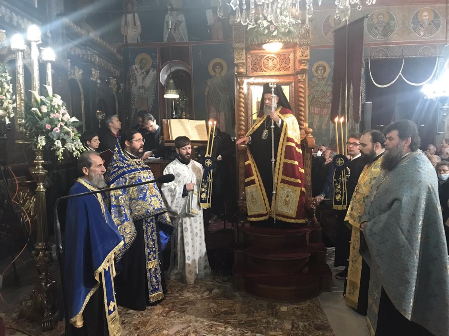 Το Σάββατο 25 Μαρτίου, εορτή του Ευαγγελισμού της Θεοτόκου, χοροστάτησε στην ακολουθία του Όρθρου και τέλεσε τη Θεία Λειτουργία στον ως άνω πανηγυρίζοντα Ιερό Ναό.