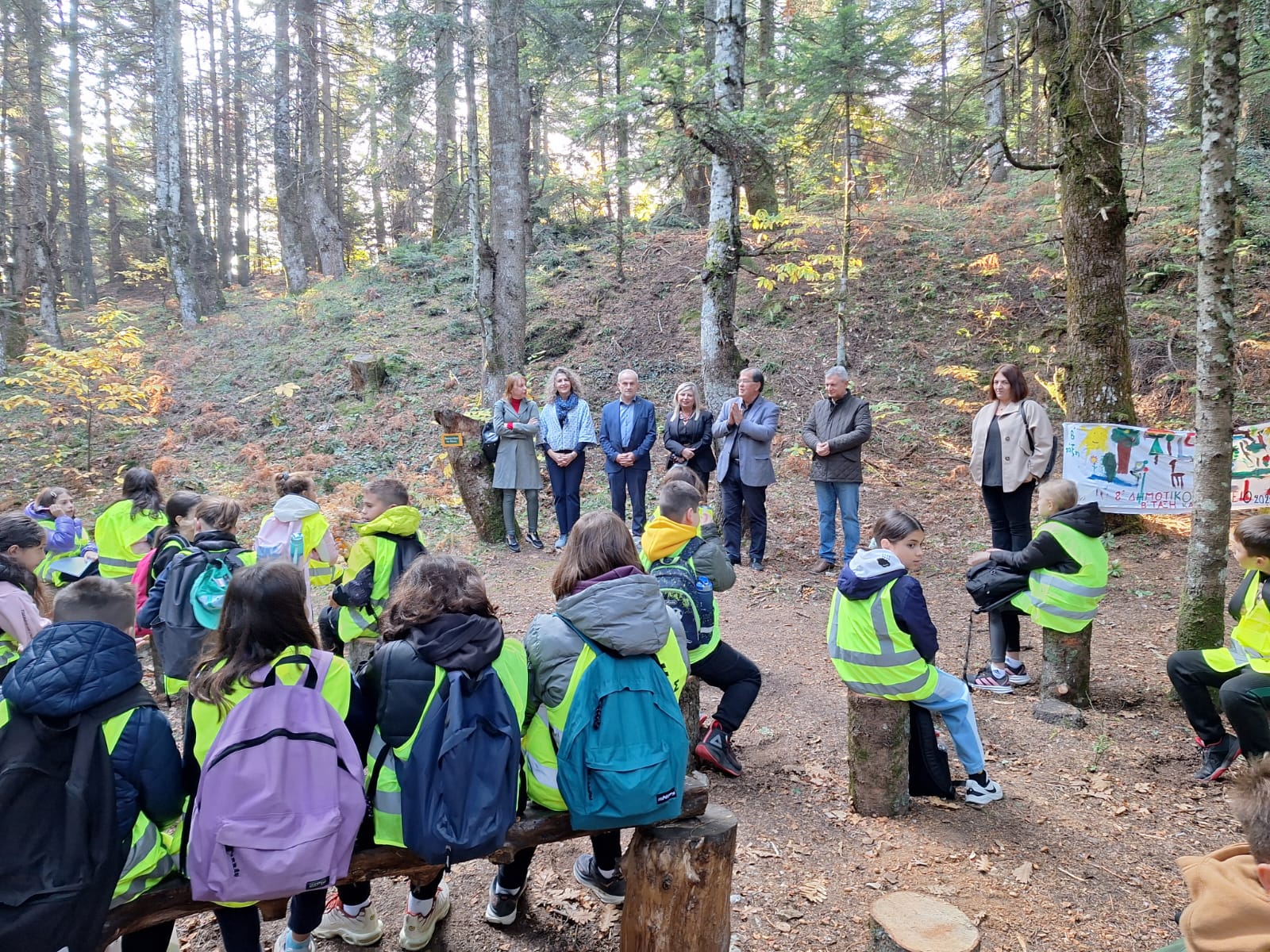 Προηγήθηκε επίσκεψη στο «Σχολείο του Δάσους της Κερασιάς» όπου παρακολούθησαν ζωντανά τις δραστηριότητες των μαθητών του 10ου δημοτικού σχολείου Καρδίτσας, τους οποίους συνόδευαν οι εκπαιδευτικοί τους.