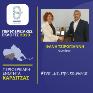 Την γεωπόνο Φανή Τσιρογιάννη, που κατέρχεται υποψήφια περιφερειακή σύμβουλος στην Π.Ε. Καρδίτσας στις αυτοδιοικητικές εκλογές του Οκτωβρίου, καλωσόρισε ο Περιφερειάρχης Θεσσαλίας Κώστας Αγοραστός στον συνδυασμό «Συμμαχία υπέρ των πολιτών».