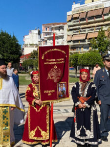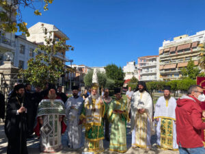 Συνέχεια είχαν η επιμνημόσυνη δέηση στο Ηρώο, έμπροσθεν του Μητροπολιτικού Ναού, και η κατάθεση στεφάνων από τον Υπουργό Αγροτικής Ανάπτυξης και Τροφίμων Κώστα Τσιάρα, ως Εκπρόσωπος της Κυβέρνησης, εκπρόσωποι των τοπικών αρχών και λοιπές Οργανώσεις και Σύλλογοι.