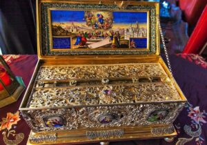 Το Θεομητορικό θησαύρισμα της αγίας μας Εκκλησίας θα τεθεί προς προσκύνηση, επιστηριγμό και αγιασμό των πιστών στον Ιερό Μητροπολιτικὸ Ναό Αγίων Κωνσταντίνου και Ελένης Καρδίτσας από το απόγευμα της Κυριακής 11ης Μαΐου μέχρι το πρωί της Πέμπτης 15ης Μαΐου ε.ε.