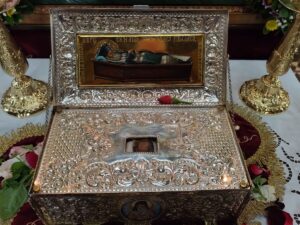 Στον ως άνω Ιερό Ναό φυλάσσεται ως τιμαλφές απόκτημα απότμημα του ιερού λειψάνου του εν αγίοις πατρός ημών Νεκταρίου επισκόπου Πενταπόλεως του εν Αιγίνη του θαυματουργού.