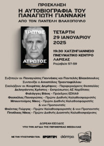 Ένα ταξίδι αυτογνωσίας και δύναμης μέσα από την τρωτότητα της ανθρώπινης φύσης αποτυπώνονται στις σελίδες του νέου βιβλίου «Τρωτός – Άτρωτος», που αφορά στην αυτοβιογραφία του Παναγιώτη Γιαννάκη. Η εκδήλωση, που τελείται υπό την αιγίδα της Περιφέρειας Θεσσαλίας, θα πραγματοποιηθεί την Τετάρτη 29 Ιανουαρίου και ώρα 19:30, στο Χατζηγιάννειο Πνευματικό Κέντρο Λάρισας, με ελεύθερη είσοδο για το κοινό.