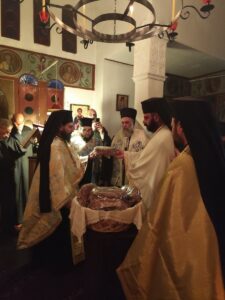 Ο Σεβασμιώτατος αναφέρθηκε επίσης στην κοίμηση του Οσίου στις 4 Ιανουαρίου 1964, επισημαίνοντας ότι, παρά τη βαριά ασθένειά του, το σώμα και τα ιερά του λείψανα ευωδίαζαν, φανερώνοντας την πληρότητα της θείας χάριτος που τον είχε επισκιάσει. Εκφράστηκε χαρά για την πνευματική σύναξη και για την προετοιμασία των πιστών ενόψει της μεγάλης εορτής των Θεοφανείων και της Βαπτίσεως του Κυρίου στον Ιορδάνη ποταμό, καθώς και για την τιμή και το προσκύνημα του ιερού λειψάνου και της ιεράς εικόνος του Οσίου Νικηφόρου του Λεπρού.
