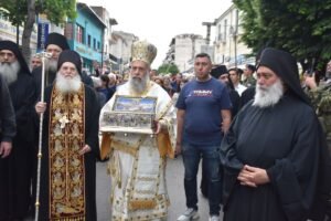 Tην Κυριακή 11 Μαΐου 2025 και ώρα 6:30 μ.μ., ο Σεβασμιώτατος Μητροπολίτης της Ιεράς Μητροπόλεως Θεσσαλιώτιδος και Φαναριοφερσάλων κ. Τιμόθεος, επικεφαλής του ιερού Κλήρου και του ευσεβούς λαού, υποδέχθηκε την Αγία Ζώνη της Παναγίας μας, έναντι του Ξενοδοχείου ΑΡΝΗ (είσοδος Κεντρικής Πλατείας) πόλεως Καρδίτσας, την οποία κόμισε ο Πανοσιολογιώτατος Αρχιμανδρίτης Γέρων Εφραίμ, Καθηγούμενος της Ιεράς Μεγίστης Μονής Βατοπαιδίου.