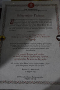 Γιά ὅλα τά ἀνωτέρω καί γιά πολλά ἄλλα τά ὁποῖα ὁ Παντογνώστης Θεός καί Κύριος τῶν καρδιῶν μας γνωρίζει, ἡ Ἱερά Μητρόπολις μας ὡς ἔκφραση ἀγάπης καί τιμῆς σᾶς ἐπιβραβεύει μέ τόν χρυσοῦν Σταυρόν μετά Ἀστέρος τοῦ ἁγίου ἐνδόξου ἱερομάρτυρος Σεραφείμ, ἀρχιεπικόπου Φαναρίου καί Νεοχωρίου τοῦ θαυματουργοῦ προστάτου μας εὐχόμενοι καί προσευχόμενοι Κύριος ὁ Θεός νά σᾶς εὐλογεῖ πλουσίως εἰς τήν ζωήν σας καί νά σᾶς ἁγιάζει!