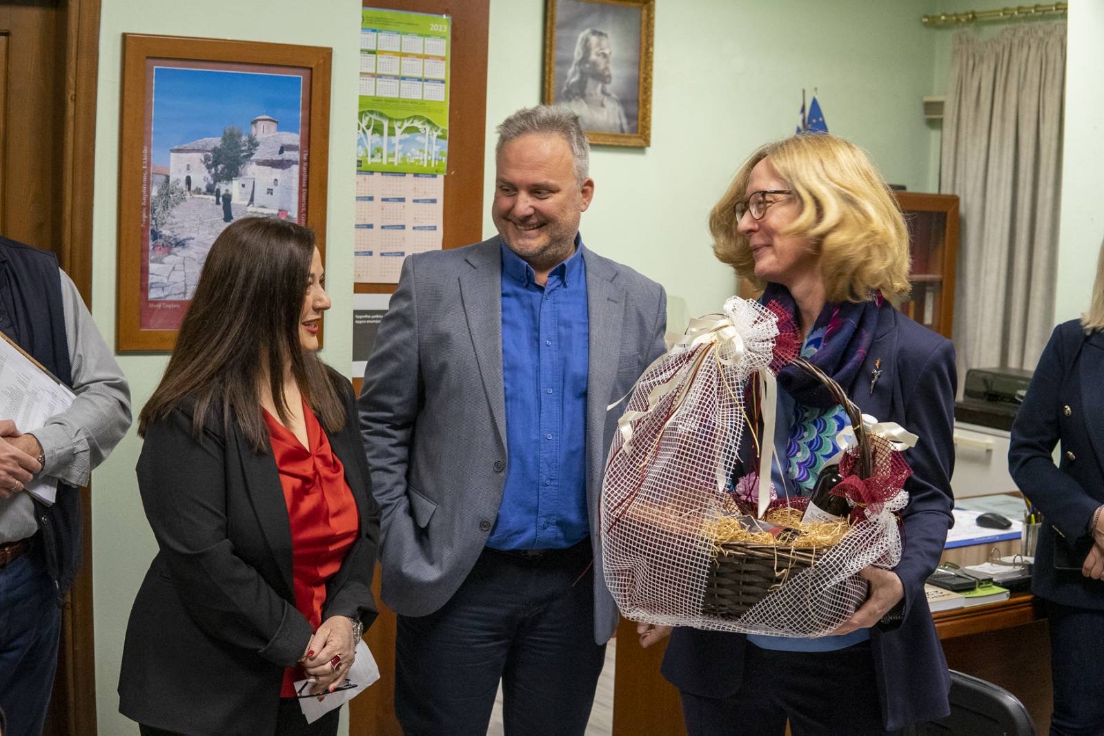 Εκ μέρους του Δήμου Μουζακίου, η Πρόεδρος του Δημοτικού Συμβουλίου κα. Δασκάλου Φανή χάρισε στην πρέσβη της Αυστρίας ως αναμνηστικό δώρο ένα καλάθι με τοπικά προϊόντα.