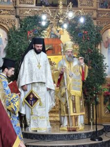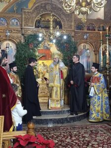 Τέλος ο Σεβασμιώτατος ευχήθηκε καλά και ευλογημένα Χριστούγεννα, να ευλογεί ο Θεός και να αγιάσει όλους και τις οικογένειές τους, και ευχαρίστησε θερμά τον πατέρα Χρυσόστομο με τον οποίο συνλειτούργησε σήμερα στον Ιερό Ναό Κοιμήσεως της Θεοτόκου Φαρσάλων.
