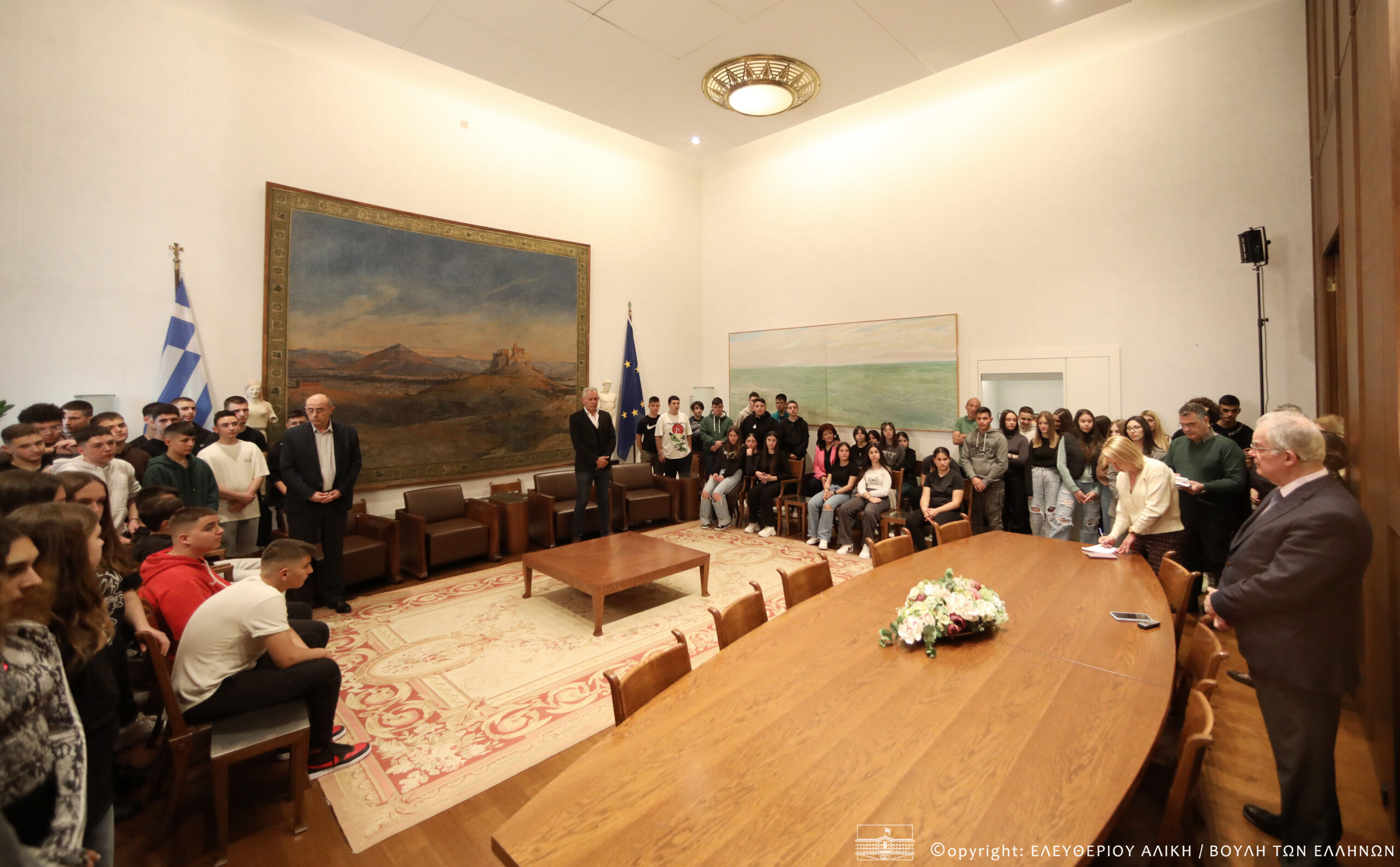 Η Βουλή των Ελλήνων φιλοξένησε μαθητές του 1ου Γυμνασίου του Παλαμά Καρδίτσας, που επλήγη από την κακοκαιρία Daniel