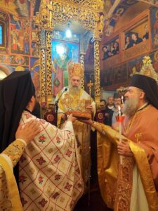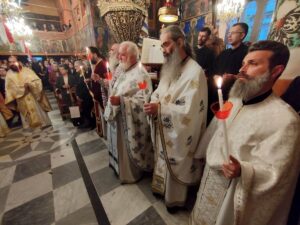 “Πάσχα Κυρίου, Πάσχα· Πάσχα των πιστών! Η διάβασή μας από τον θάνατο, την αμαρτία και τη φθορά στην αιωνιότητα της Βασιλείας του Θεού. Και βέβαια, αδελφοί μου, αυτό πραγματοποιείται με την Ανάσταση του Χριστού, του Υιού του Θεού, ο οποίος, με τη θέλησή Του, προσφέροντας τον εαυτό Του και δια του ζωοποιού Σταυρού Του, μάς χάρισε την Ανάστασή μας, μαζί με τη δική Του Ανάσταση. Εξάλλου, την προανήγγειλε με την ένδοξη Ανάσταση του Αγίου Τετραημέρου Λαζάρου – ως πρόγευση της κοινής αναστάσεως όλων. Μας επιβεβαίωσε το γεγονός της Αναστάσεως, και μαζί Του γινόμαστε κι εμείς «πρωτότοκοι εκ των νεκρών», μετέχοντας στο γεγονός αυτό, αλλά μέσα στον ναό της Θεοτόκου, που αναδεικνύεται ως Παράδεισος για όλους εμάς. Εικόνα της ζώσης Βασιλείας.