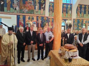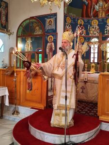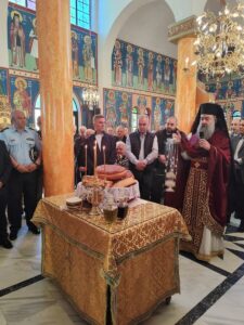 Χαρά μας ιδιαίτερη είναι που είμαστε όλοι μαζί σήμερα, και οι εκπρόσωποι των αρχών, για να προσευχηθούμε στην Αγία Ειρήνη, για όλους αυτούς τους αποστράτους – ευγενείς ανθρώπους και συνανθρώπους μας, οικείους μας – οι οποίοι υπηρέτησαν τόσο στο σώμα της παλαιάς Ελληνικής Χωροφυλακής, όσο και στη συνέχεια στην Ελληνική Αστυνομία, που για ένα μεγάλο διάστημα είχαν και εκείνοι προστάτιδά τους την Αγία Ειρήνη.