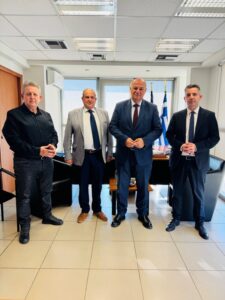 Σε ευρεία σύσκεψη εργασίας προήδρευσε ο Υπουργός Αγροτικής Ανάπτυξης και Τροφίμων, Κώστας Τσιάρας, κατά τη διάρκεια επίσκεψής του στα γραφεία του ΕΛΓΟ-ΔΗΜΗΤΡΑ. Στη συνάντηση συμμετείχαν ο Πρόεδρος του Οργανισμού, Αντώνης Φιλιππής, ο Α΄ Αντιπρόεδρος, Καθηγητής Νεκτάριος Βιδάκης και ο Β΄ Αντιπρόεδρος, Παναγιώτης Χατζηνικολάου, οι Γενικοί Διευθυντές του Οργανισμού και εκπρόσωπος των εργαζομένων.