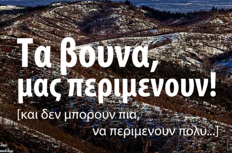 Πρέπει να τονίσουμε κάτι: τα Άγραφα έχουν αγαπηθεί από πολλούς ανθρώπους κι όλοι αυτοί έχουν προστρέξει, με κάθε τρόπο που μπορούν, για να τα προστατεύσουν. Όπου μάλιστα έχει διαμορφωθεί μία ευρύτερη κοινωνική συμμαχία πολιτών και θεσμικών φορέων, οι εταιρίες οπισθοχωρούν, οι αδειοδοτήσεις ακυρώνονται και οι τοπικοί τους συνεργάτες σωπαίνουν. Είναι αυτή ακριβώς η ώρα που τα βουνά μας, μας περιμένουν. Και η δική μας ευθύνη είναι πολύ συγκεκριμένη και ευκολονόητη. Τα βουνά μας, περιμένουν το αυτονόητο από εμάς. Να τιμήσουμε τις ρίζες μας σε αυτά, προασπίζοντάς τα. Να συμμετέχουμε στις ενωτικές πολύπλευρες δράσεις για την προστασία τους σε κάθε χωριό, σε κάθε κορυφογραμμή, σε κάθε πόλη που ζούμε. Έτσι, τα ξαναζωντανεύουμε, έτσι οι άνθρωποι ξαναϋπάρχουν και πάλι σε αυτά, έτσι το βουνό και ο άνθρωπος αποκτά και πάλι μια ζωή άρρηκτα συνδεδεμένη.