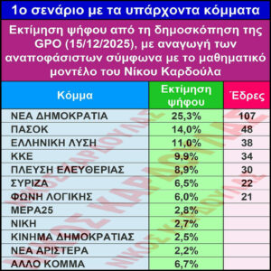 1ο σενάριο: Εκτίμηση ψήφου με τα υπάρχοντα κόμματα