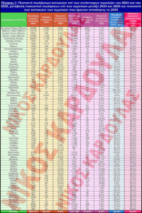Στους παρακάτω πίνακες 1 και 2 απεικονίζονται: