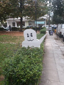 Στη γιορτή συμμετείχαν όλα τα παιδιά του Κέντρου και, όπως μας ενημέρωσε η υπεύθυνη αυτού Φένια Τζέλλου, περιλάμβανε σχετική ομιλία για το έθιμο, μπουφέ με γλυκίσματα με τη μορφή … φαντασμάτων ενώ ανάλογος ήταν και ο στολισμός!!!