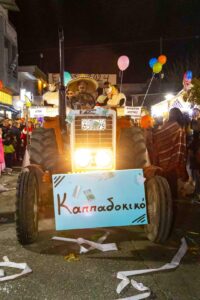 Πολύχρωμα άρματα, με ποικίλη θεματολογία, εμπνευσμένη σε πολλές περιπτώσεις από την ίδια την επικαιρότητα, είτε την τοπική, όπως το άρμα με τοπ αγροτικό μπλόκο του Δέλτα, είτε τη γενικότερη πολιτική και κοινωνική κατάσταση και ζωή του τόπου, και φυσικά τα άρματα που είχαν χρώμα … τοπικό, με τους Συλλόγους, δηλαδή, των χωριών του Δήμου Σοφάδων και πολλά πολλά ακόμη ευφάνταστα και διασκεδαστικά.