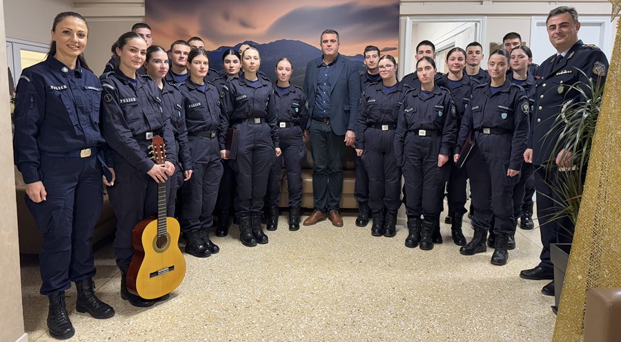 Σε Ιδιαίτερα γιορτινό κλίμα υποδέχθηκε ο Αντιπεριφερειάρχης Καρδίτσας κ. Κων/νος Τέλιος τις παραμονές των Χριστουγέννων, τους δόκιμους της Σχολής Αστυφυλάκων Μουζακίου και του Κέντρου Εκπαίδευσης Στρατονομίας Ρούσσου Καρδίτσας, οι οποίοι έψαλαν τα χριστουγεννιάτικα κάλαντα, γεμίζοντας μελωδίες και ζεστασιά το κτίριο της Περιφέρειας.