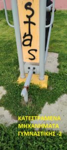 Στις 3 και 4 Οκτώβρη 2024 είχα δημοσιεύσει στα ΜΜΕ της Καρδίτσας ένα άρθρο σε δύο συνέχειες όπου, με φωτογραφικό υλικό, κατέθετα καλοπροαίρετα κάποιες απόψεις μου για βελτίωση της λειτουργίας του Αθλητικού Πάρκουκαι παραπέρα ανάδειξής του. Από τις 21 εκείνες επισημάνσεις μου δύο αντιμετωπίστηκαν οι υπαρ. 13 και 18. Για τα μηχανήματα γυμναστικής πρότεινα τη συντήρηση (λάδωμα, γρασάρισμα κλπ) διότι όπως έγραφα τρίζουν, σκούζουν και ζητούν συντήρηση γιατί , όπως έγραφα, αν αφεθούν έτσι, σύντομα θα έχουμε απώλειες. Και σύντομα ήρθε μια απώλεια ακόμη. Ήδη σε ένα μηχάνημα αποκολλήθηκε το ένα σκέλος του διότι έμεινε χωρίς συντήρηση. Με αυτό μετρούνται τρία αυτά που βγήκαν εκτός λειτουργίας σε σύνολο 10.