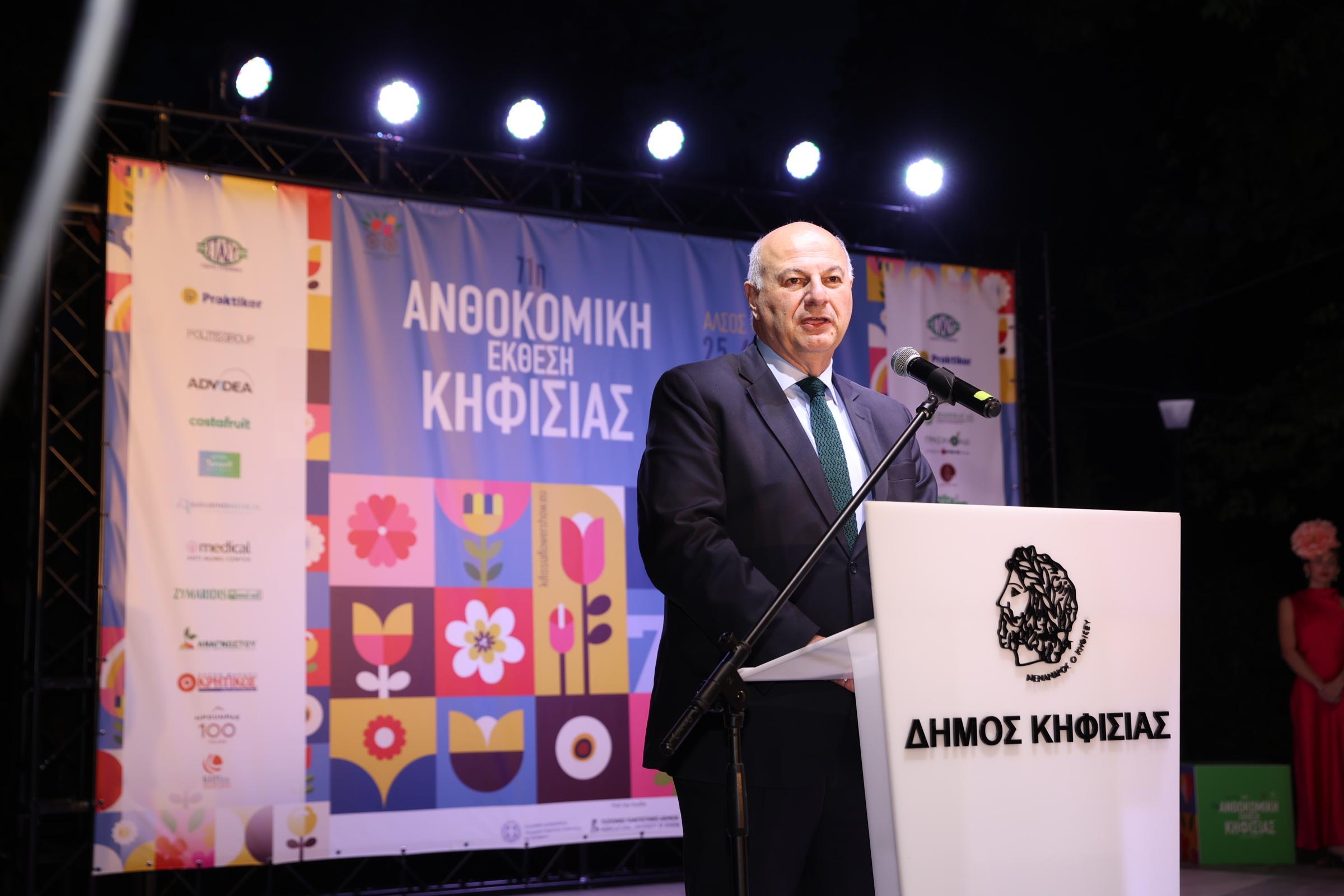 Την ιδιαίτερη σημασία της Ανθοκομικής Έκθεσης Κηφισιάς τόσο για τον πρωτογενή τομέα όσο και για τον πολιτισμό, την αισθητική και την παράδοση, υπογράμμισε ο Υπουργός Αγροτικής Ανάπτυξης και Τροφίμων, Κώστας Τσιάρας, κατά τη διάρκεια των εγκαινίων της 71ης Ανθοκομικής Έκθεσης Κηφισιάς.