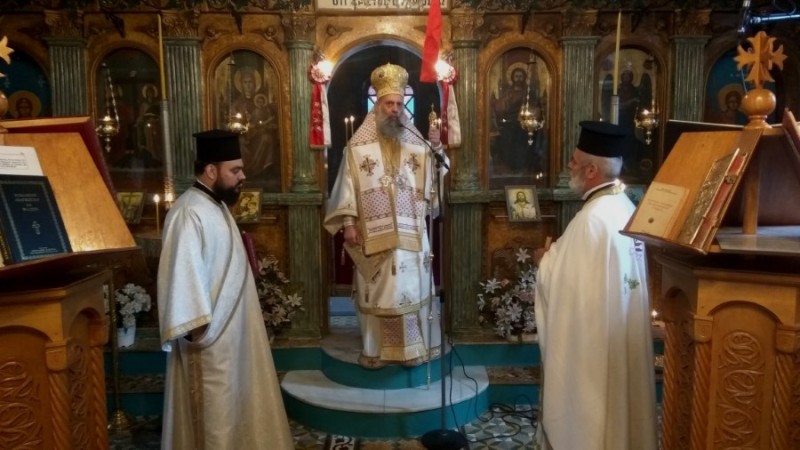 Προ της απολύσεως, τέλεσε το ιερό μνημόσυνο υπέρ αναπαύσεως της μακαριστής Χρυσούλας Αυγέρη.