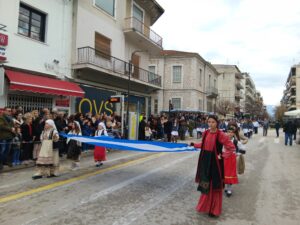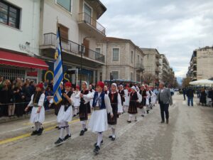 Οι εορταστικές εκδηλώσεις κορυφώθηκαν, στις 12:00 το μεσημέρι της Τετάρτης, με τη μεγαλειώδη παρέλαση, στην οδό Καραϊσκάκη, τμημάτων του Ελληνικού Ερυθρού Σταυρού, μαθητών, σπουδαστών, Προσκόπων, Οδηγών, πολιτιστικών συλλόγων, των Σωμάτων Ασφαλείας και των Ενόπλων Δυνάμεων (ΚΕΣΝ και Σχολή Αστυφυλάκων).
