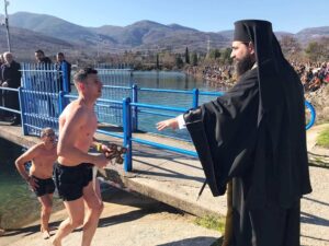 Στις 12:00 το μεσημέρι ακολούθησε η Κατάδυση του Τιμίου Σταυρού στην αναρρυθμιστική λίμνη.