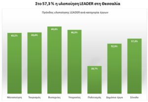 Σύμφωνα με στοιχεία των ΟΤΔ της Θεσσαλίας (Αναπτυξιακές Καρδίτσας & Τρικάλων, Αναπτυξιακοί Οργανισμοί Λάρισας & Μαγνησίας) οι συνολικές πληρωμές των ιδιωτικών και δημόσιου χαρακτήρα έργων που είναι ενταγμένα στα 4 τοπικά προγράμματα CLLD/LEADER του Προγράμματος Αγροτικής Ανάπτυξης 2014-2020 έχουν αγγίξει το 57,3% της εγκεκριμένης κατανομής και συνολικά τα 15,4 εκατ. ευρώ. Τα έργα συγχρηματοδοτούνται από το Υπουργείο Αγροτικής Ανάπτυξης & Τροφίμων και το Ευρωπαϊκό Γεωργικό Ταμείο Αγροτικής Ανάπτυξης.