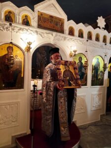 Ο Σεβασμιώτατος Μητροπολίτης μας κ. Τιμόθεος προέστη της λιτανευτικής πομπής, η οποία ξεκίνησε από τον Ιερό Ναό Αγίας Τριάδος και κατέληξε στο Ιερό Παρεκκλήσιο Αγίου Δαμιανού, όπου και τελέσθηκε στη συνέχεια η ακολουθία του Εσπερινού.