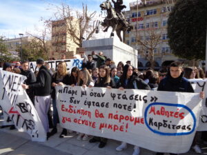 Μετά τη συγκέντρωση, ακολούθησε πορεία μέχρι τον σιδηροδρομικό σταθμό Καρδίτσας.