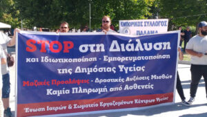 ΟΧΙ στην εμπορευματοποίηση του νερού – το νερό είναι κοινωνικό αγαθό. Οχι στην ιδιωτική ασφάλιση των οικημάτων και στην απαλλαγή της ευθύνης του κράτους με προώθηση της ατομικής ευθύνης.