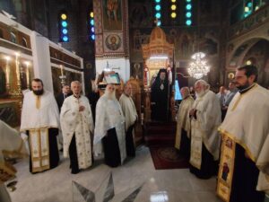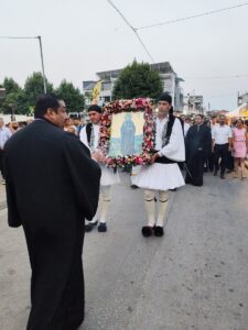 Με τη δέουσα λαμπρότητα τελέσθηκε την Πέμπτη 25 Ιουλίου 2024 ο Πανηγυρικός Εσπερινός επί τη σεπτή μνήμη της Αγίας ενδόξου Οσιοπαρθενομάρτυρος Παρασκευής της Αθληφόρου στον ομώνυμο Ιερό Ναό Σοφάδων, χοροστατούντος του Σεβασμιωτάτου Μητροπολίτου μας κ. Τιμοθέου. Μετά το τέλος της ακολουθίας του Εσπερινού, προέστη της λιτανεύσεως της ιεράς Εικόνος της Αγίας Παρασκευής.