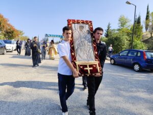 Το εσπέρας του Σαββάτου 28 Σεπτεμβρίου έλαβε χώρα η επίσημος υποδοχή της τιμίας κάρας του Αγίου στην κεντρική είσοδο του προαυλίου του Ιερού Ναού Αγίου Σεραφείμ Φαναρίου και λιτανευτική εισόδευση αυτής στον Ιερό Ναό, υπό του Σεβασμιωτάτου Μητροπολίτου Κεφαλληνίας κ. Δημητρίου.