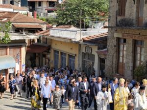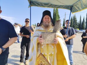 Την τιμία Κάρα κόμισε ο ιερομόναχος Ιωσήφ, αδελφός της Ιεράς Μονής Κορώνης. Να σημειώσουμε ότι η τιμία Κάρα φυλάσσεται στην Ιερά Μονή Κορώνης ως τιμαλφές απόκτημα χαρίζοντας σ’ αυτούς που με πίστη προστρέχουν «πάσιν ἰάματα».