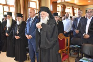 Ακολούθως, ο Μακαριώτατος Αρχιεπίσκοπος Αθηνών και πάσης Ελλάδος κ.κ. Ιερώνυμος κήρυξε την πανηγυρική έναρξη του Συνεδρίου και απηύθυνε χαιρετισμό.