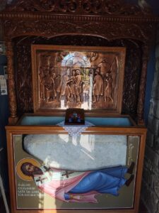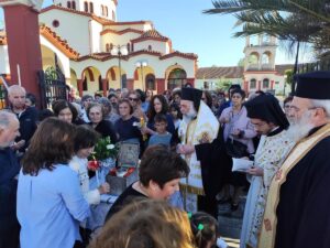 Στις 5 το απόγευμα πραγματοποιήθηκε η μετακομιδή της τιμίας κάρας του Αγίου στον Ενοριακό Ιερό Ναό Αγίου Σεραφείμ Φαναρίου, όπου τελέσθηκε ο πανηγυρικός Αρχιερατικός Εσπερινός, χοροστατούντος του Μητροπολίτου μας κ. Τιμοθέου. Ακολούθησε προσκύνηση και δέηση στον τόπο του μαρτυρίου του Αγίου, μέσα σε κλίμα συγκίνησης και ευλάβειας.