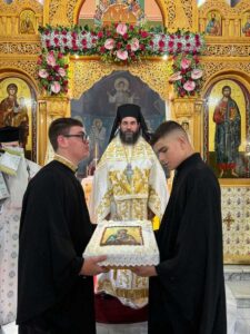 Της ακολουθίας του εσπερινού προεξήρχε ο Πανοσιολογιώτατος Αρχιμανδρίτης π. Θεόκλητος, Καθηγούμενος της Ιεράς Μονής Γενεσίου της Θεοτόκου Πετρίλου, συμπαραστατούμενος υπό πλειάδος ιερέων.