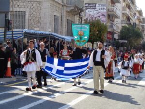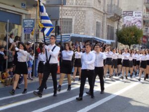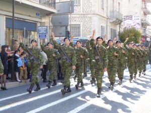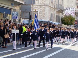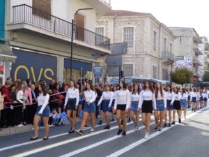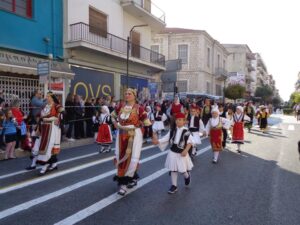 Οι εκδηλώσεις κορυφώθηκαν στις 12:00 το μεσημέρι με τη μεγαλειώδη παρέλαση στην οδό Καραϊσκάκη παρουσία των επισήμων, τμημάτων του Ερυθρού Σταυρού, μαθητών, σπουδαστών, Προσκόπων, Οδηγών, πολιτιστικών συλλόγων, της Ραδιολέσχης και της Λέσχης 4Χ4, της Ελληνικής Αστυνομίας, της Πυροσβεστικής και του Στρατού που απέσπασε το πιο δυνατό χειροκρότημα.