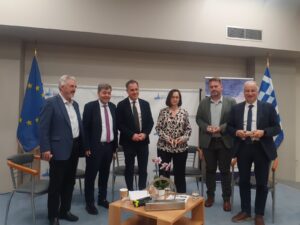 κ. Γιώργος Καπεντζώνης, Αντιπρόεδρος της Επιτροπής Κυκλικής Οικονομίας & Διαχείρισης Υδάτων της ΚΕΔΕ και Επίτιμος Πρόεδρος του Δικτύου Πόλεων με Λίμνες, που τόνισε τη σημασία της διασύνδεσης των Δήμων μέσω τέτοιων Δικτύων, τα οποία χαρακτήρισε «ζωντανά εργαστήρια» και «αναγκαία».