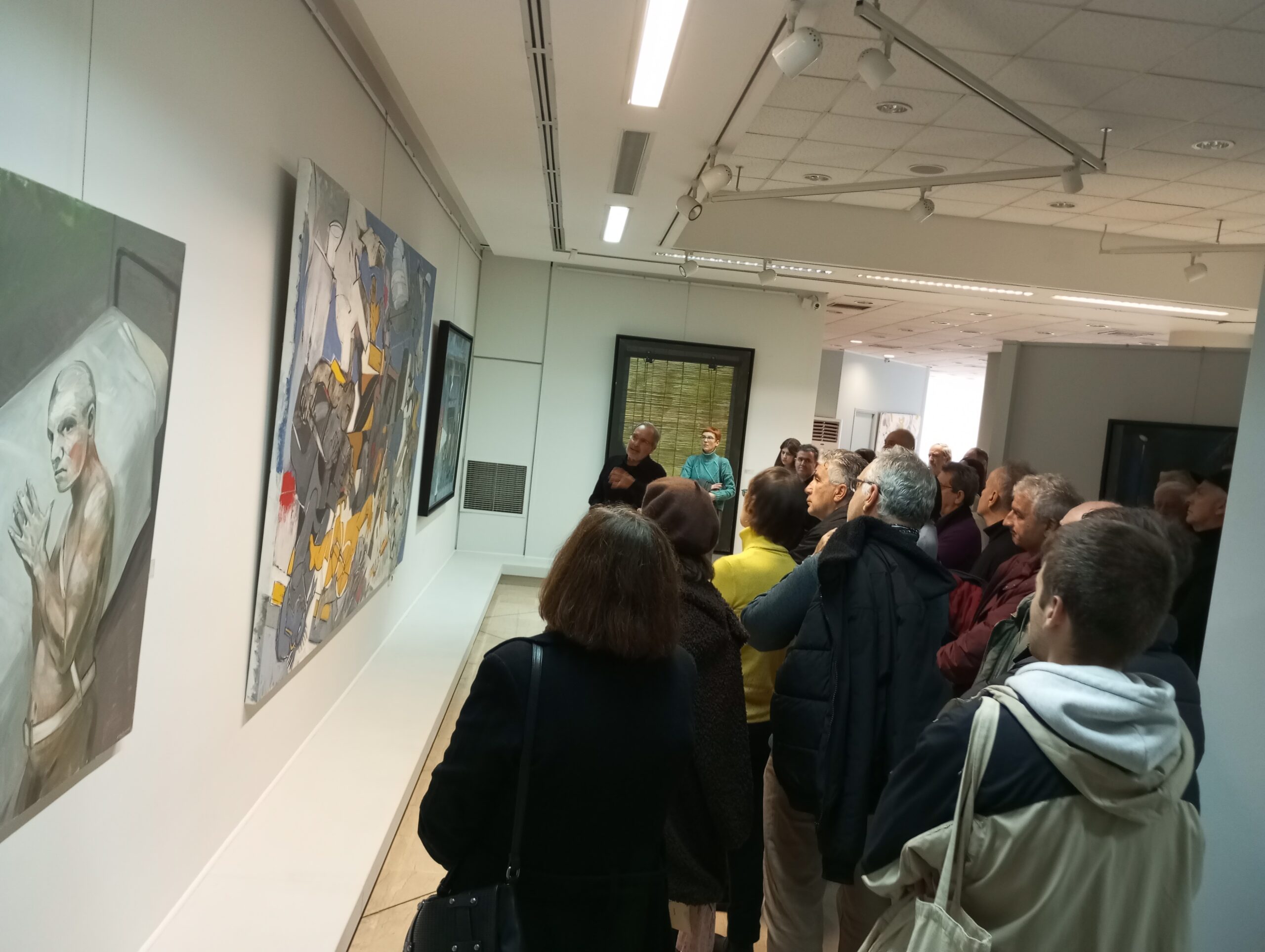Ο κ. Μάνος Στεφανίδης, ιστορικός τέχνης – Ομότιμος Καθηγητής Πανεπιστημίου Αθηνών, υπήρξε για χρόνια συνεργάτης του καλλιτέχνη και συστηματικός μελετητής του έργου του. Μοιράστηκε με το κοινό πολύτιμες πληροφορίες και σκέψεις προσφέροντας μια εμπλουτισμένη εμπειρία περιήγησης στην μουσειολογική αφήγηση: τα έργα, το σημασιολογικό τους περιεχόμενο, οι συμβολισμοί, οι δημιουργικές εμμονές και οι συνομιλίες του καλλιτέχνη με άλλους ομοτέχνους του. Ένα πλέγμα πυκνό και πολυεπίπεδο που φώτισε το κεντρικό θέμα διαπραγμάτευσης του ομιλητή που ήταν: ‘’Κυριάκος Κατζουράκης – Τέχνη και Πολιτική’’ και επέτρεψε στ@ς παριστάμεν@ς να κοινωνήσουν με πιο υποψιασμένο βλέμμα τα έργα του καλλιτέχνη.