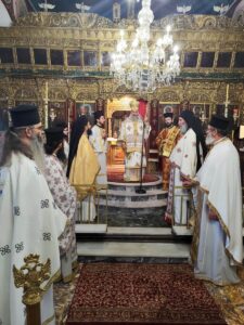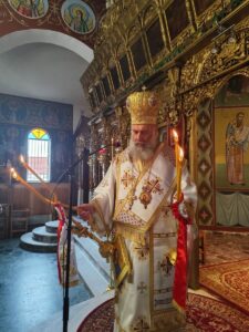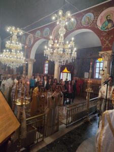 Ο Ναός αυτός πλέον έχει μια άλλη, πολύ διαφορετική εικόνα από αυτήν την οποία λίγο πολύ όλοι γνωρίζαμε αλλά και εγώ, για όσες φορές είχα έρθει εδώ και είχα τελέσει Ιερές Ακολουθίες ή Θεία Λειτουργία. Και αυτό βέβαια οφείλεται στην παρουσία του Πατρός Κυρίλλου, των μελών του Εκκλησιαστικού Συμβουλίου αλλά και όλων σας, όπου ευπρεπίζεται ο Ναός, όπου γίνεται πράγματι χαριτωμένος, για να εισερχόμαστε μέσα σε Αυτόν και να κατανύσσεται η ψυχή μας και να προσευχόμαστε και να ζητούμε την παρουσία του Θεού εις τη ζωή μας. Και αυτό σας παρακαλώ πολύ, πάντοτε να το έχετε μέσα στη σκέψη σας και στην καρδιά σας και στη διάθεσή σας.