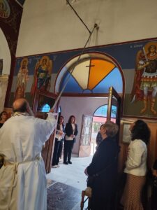 Και σήμερα λοιπόν με αυτά τα πολύ ευλογημένα από τον Θεό, που μας παρέδωσαν οι Πατέρες μας, που τελέσαμε, αυτό ομολογήσαμε αλλά και προσφέραμε σε εσάς με πολύ αγάπη, αυτόν τον Ναό, εγκαινιασμένο, για να γίνεται για σας ο τόπος του προσκυνήματός σας, της λατρείας του Θεού, όπως έλεγε και η ευχή την οποία διαβάσαμε, «Δαιμόνων φυγαδευτήριο, τόπος χαρισμάτων, τόπος χαρίτων, τόπος ευεργεσιών, τόπος παρουσίας του Αγίου Πνεύματος, για τη σωτηρία του ανθρώπου».