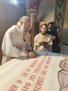 Εκείνος είναι ο Δωτήρ των αγαθών, Εκείνος είναι ο οποίος μας τα προσφέρει όλα, αδελφοί μου. Και θέλω και όλους εσάς να ευχαριστήσω, διότι και χθες το βράδυ και σήμερα με πολλή υπομονή και με πολλή προσευχή ήσασταν παρόντες και προσευχηθήκατε μαζί μας, για να τελέσουμε τον Ιερό Εγκαινιασμό αλλά και στη συνέχεια τη Θεία Λειτουργία και να κοινωνήσουμε του Σώματος και του Αίματος του Χριστού.